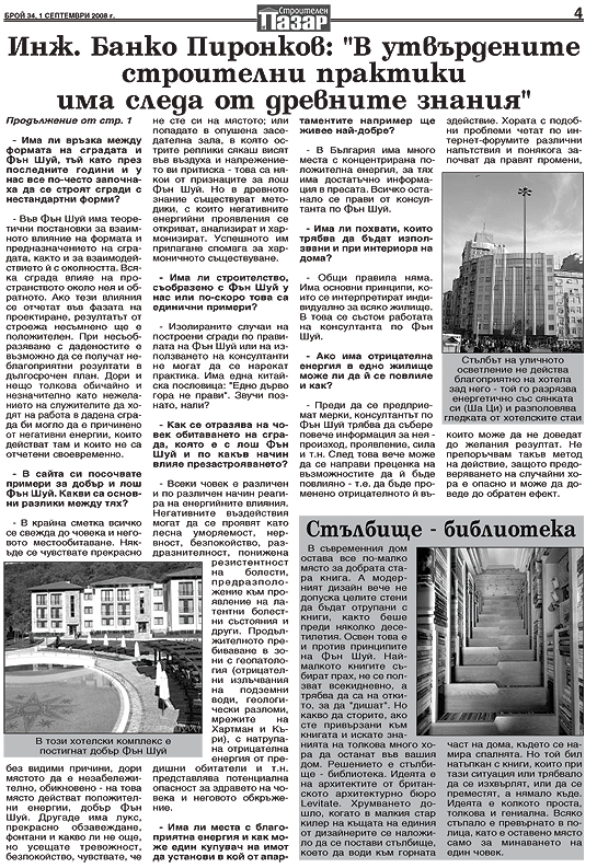 Интервю за в-к "Строителен пазар", бр.34, 1-7.09.2008 г.