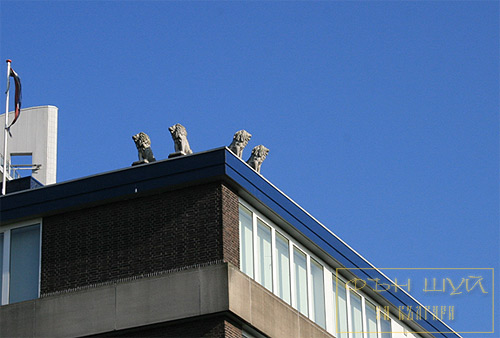 Тези четири лъва няма какво да пазят или от какво да защитават сградата, като стоят на ъгъла на покрива. Те са толкова малки, че отдолу трудно се забелязват, затова и естетическата им функция не е много ясна.