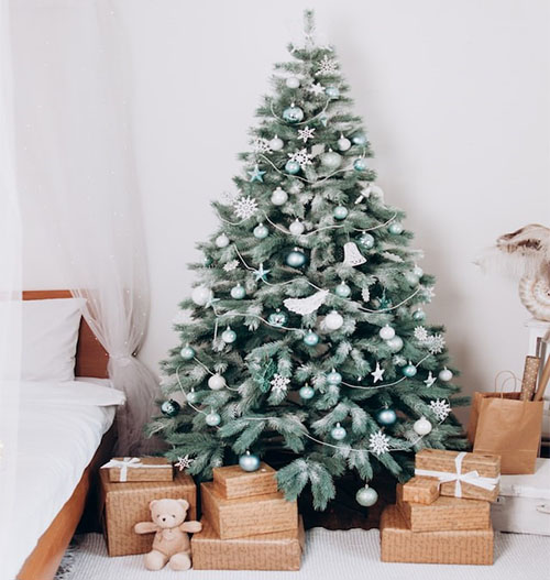 Ако елхата е като заснежена, с бели гирлянди и украси, тогава се внася елемента Метал.